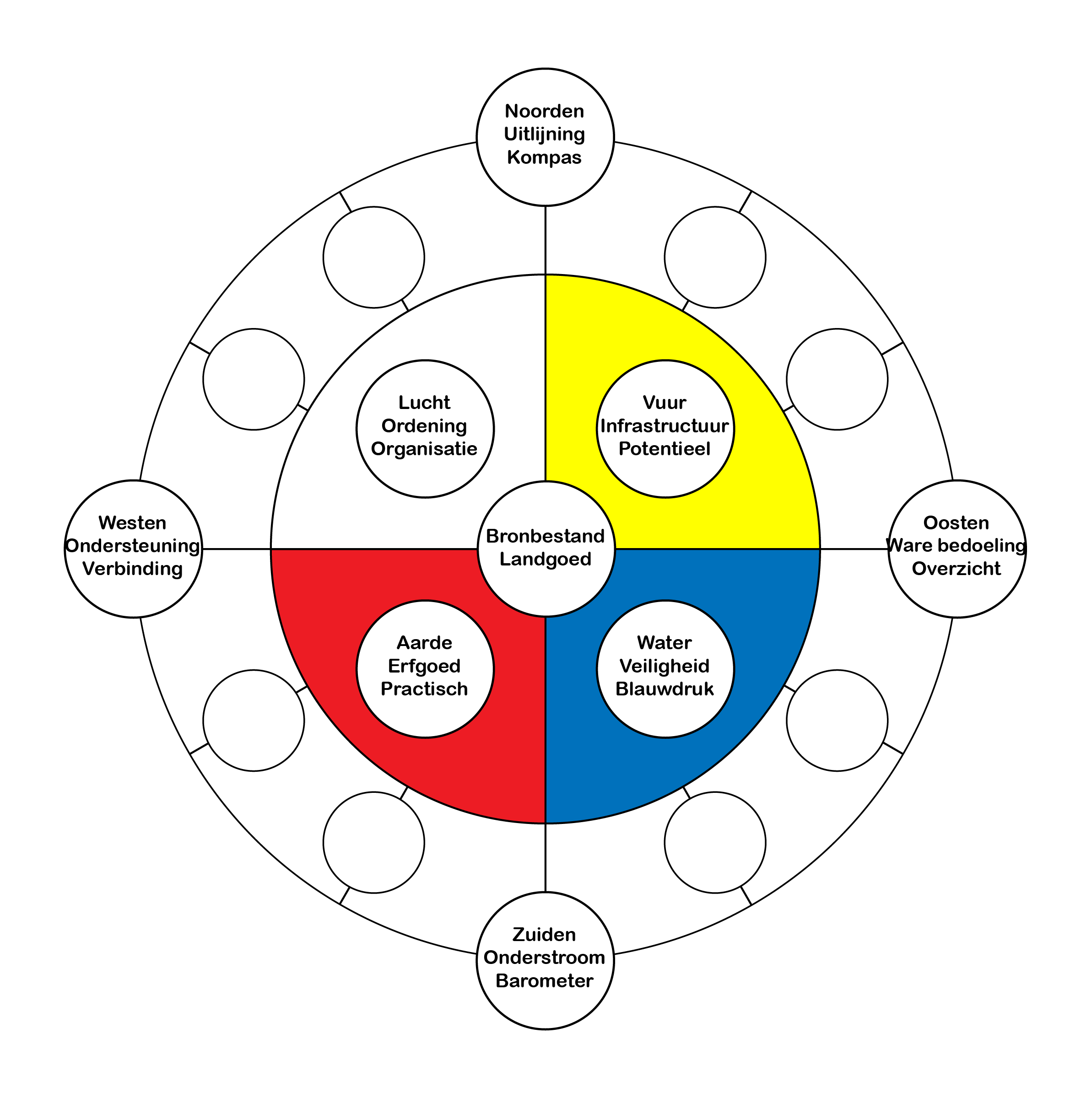 levenswiel. Het is verbonden aan de windrichtingen, elementen,